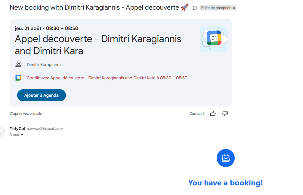 Une fois ajouté, allez sur votre email et appuyez sur le bouton ajouter à votre agenda.